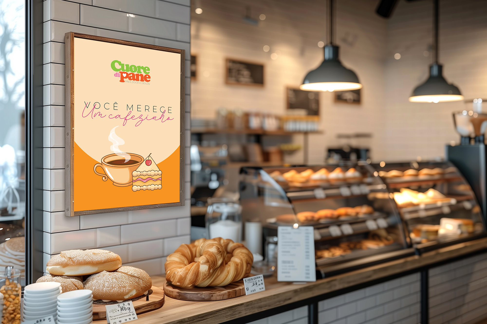 Mais do que um nome, Cuore di Pane traduz a essência do pão quentinho, da hospitalidade e do aconchego que encontramos nas melhores padarias do Brasil. Aquele cheirinho irresistível de café passado na hora, a fatia de bolo fofinho no balcão e a conversa boa com os clientes fiéis – tudo isso está no DNA dessa marca, que nasceu para encantar e fidelizar.