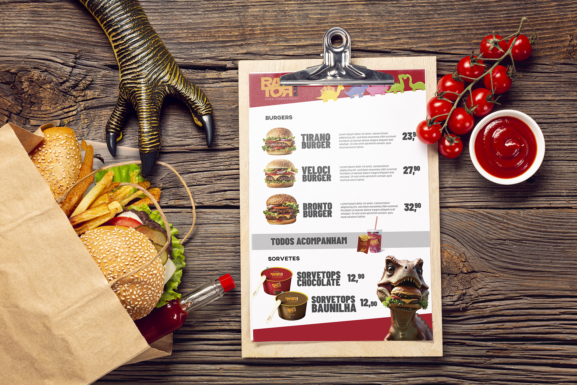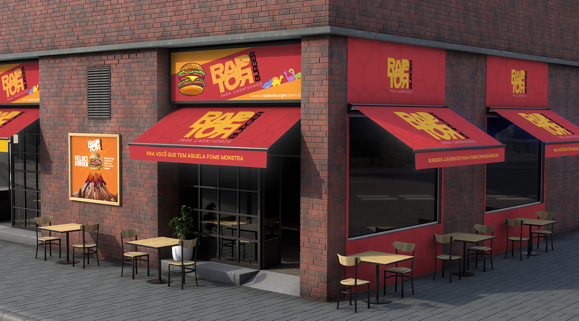 Assuma o topo da cadeia alimentar do mercado de burgers — leve a Raptor Burger para o seu negócio e sirva sabor em escala pré-histórica!